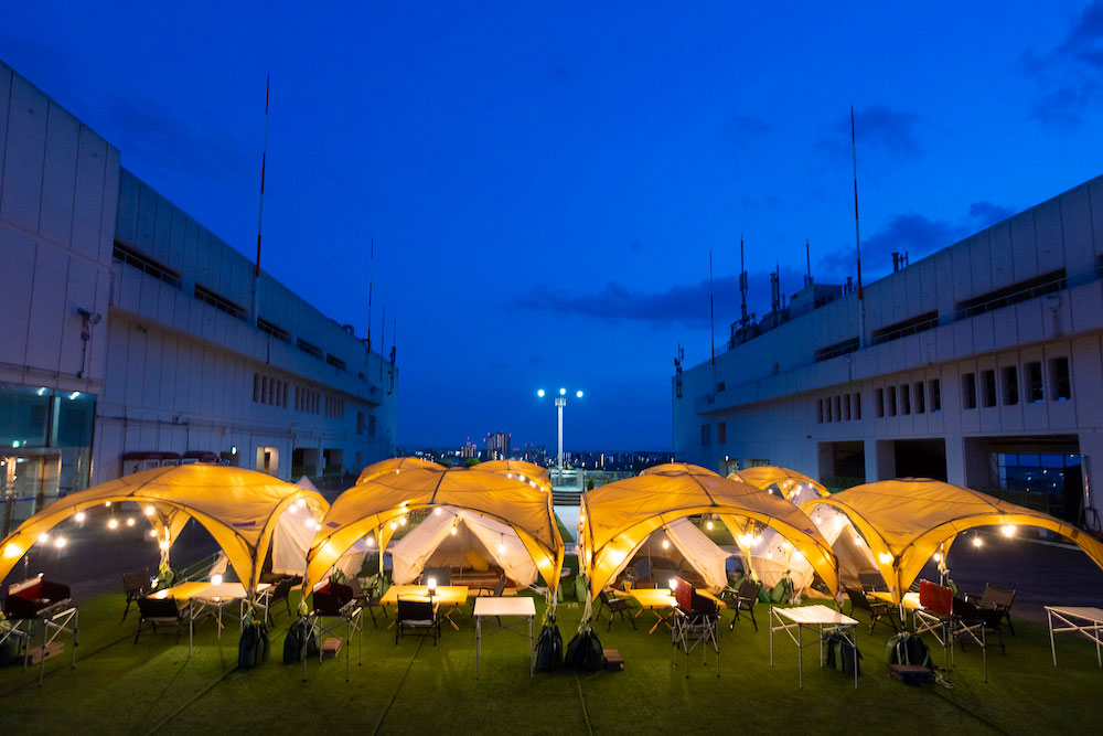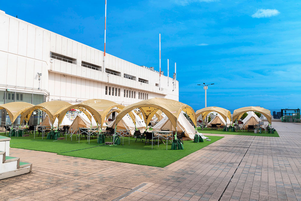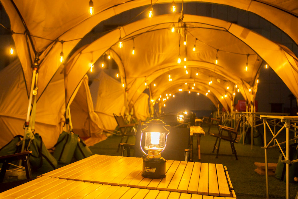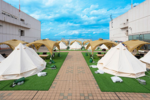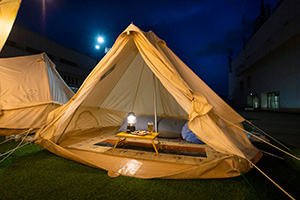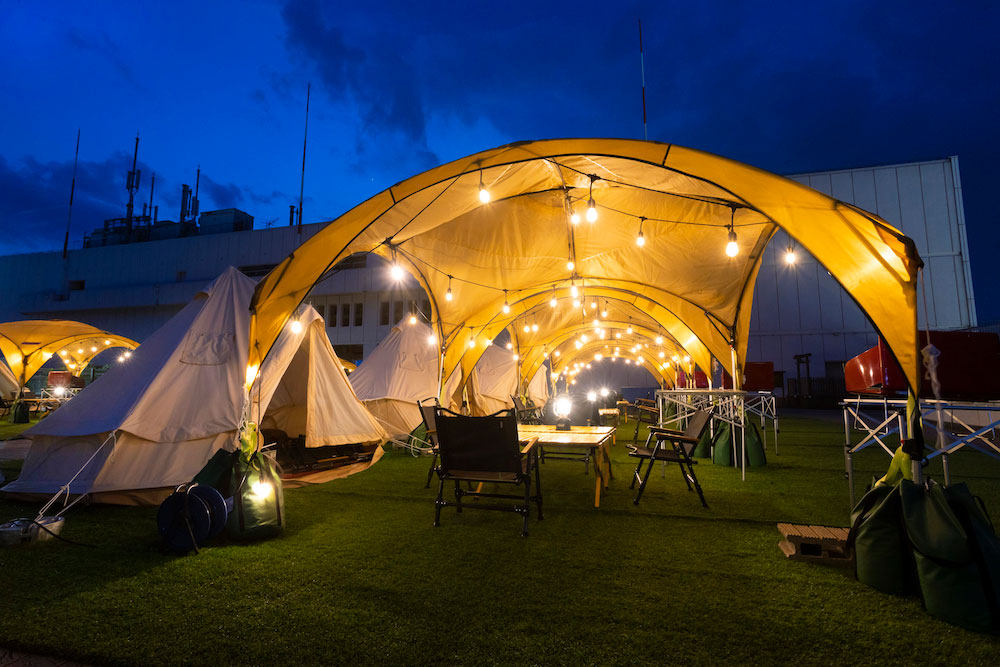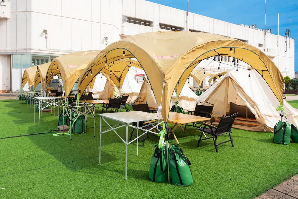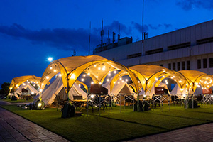 最大72名様までご利用可能なグランピングテントも完備。天候の心配不要です。
