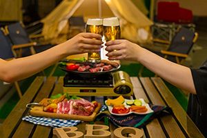 手ぶらでお越しいただき、準備も後片付けも不要のフリードリンク付きバーベキュープランを2プランの中からお選び頂けます。