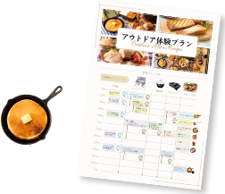 面倒な下ごしらえや、食材の準備不要で本格的なキャンプ飯が堪能できます。バターチキンカレーや燻製料理、スキレットで焼くふっくらパンケーキなど大満足間違いなしのプランです。